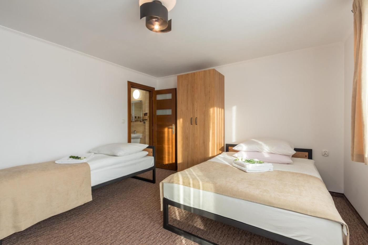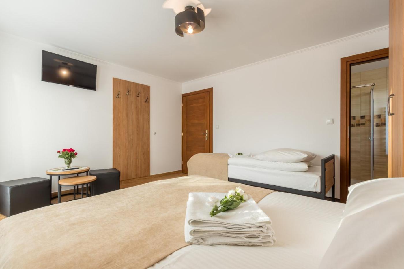 Apartament. This apartment features 1 living room, 1 separate bedroom and 1 bathroom with a shower. The well-fitted kitchenette has a stovetop, a refrigerator, kitchenware and an electric kettle. This apartment features a wardrobe, heating, a flat-screen TV and a quiet street view. The unit has 3 beds. Apartament - 4 osobowy.