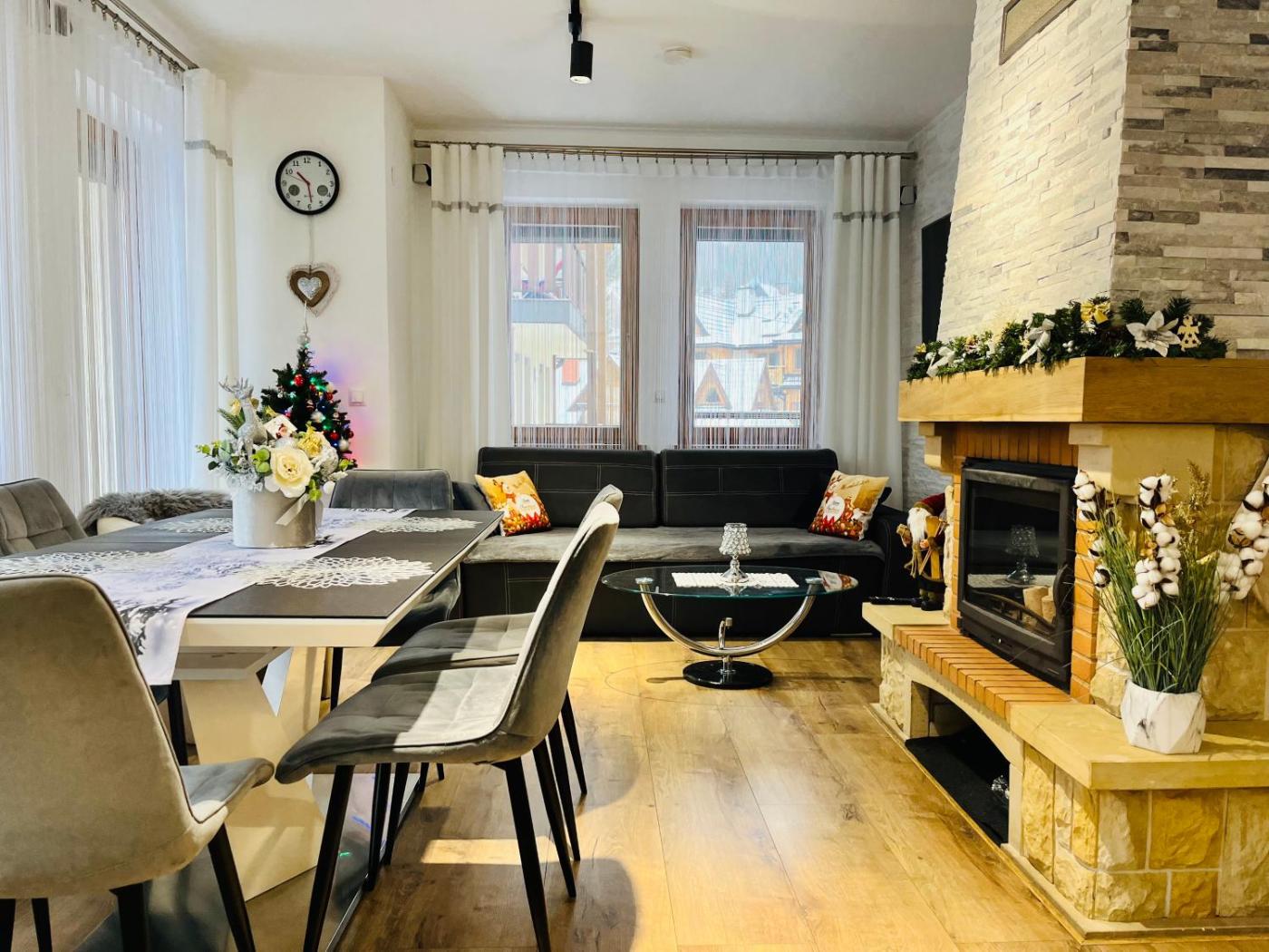 Apartament z widokiem na góry. This apartments standout feature is the fireplace. Boasting a private entrance, this apartment includes 1 living room, 1 separate bedroom and 1 bathroom with a shower and a hairdryer. Guests will find a stovetop, a refrigerator, a dishwasher and kitchenware in the fully equipped kitchenette. The apartment also features a barbecue. Featuring a terrace with garden views, this apartment also offers a washing machine and a flat-screen TV. The unit has 3 beds. Apartament - 6 osobowy. Powierzchnia pokoju ok.: 49 mkw.