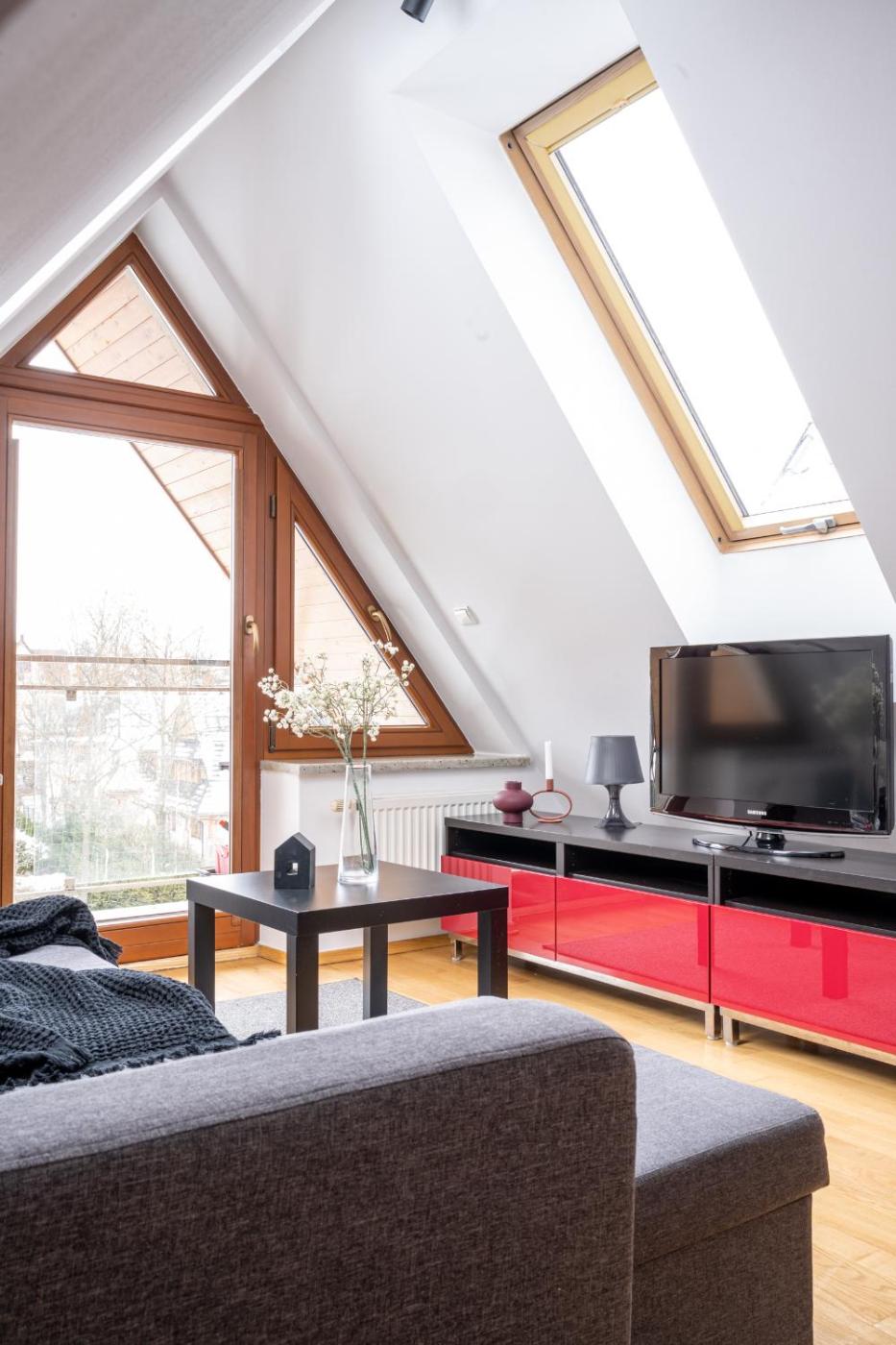 Apartament z 1 sypialnią. Featuring a private entrance, this apartment is comprised of 1 living room, 1 separate bedroom and 1 bathroom with a shower and a hairdryer. Guests can make meals in the kitchenette that is fitted with a stovetop, a refrigerator, kitchenware and a microwave. Boasting a balcony with mountain views, this apartment also offers soundproof walls and a flat-screen TV. The unit offers 3 beds. Apartament - 4 osobowy. Powierzchnia pokoju ok.: 32 mkw.