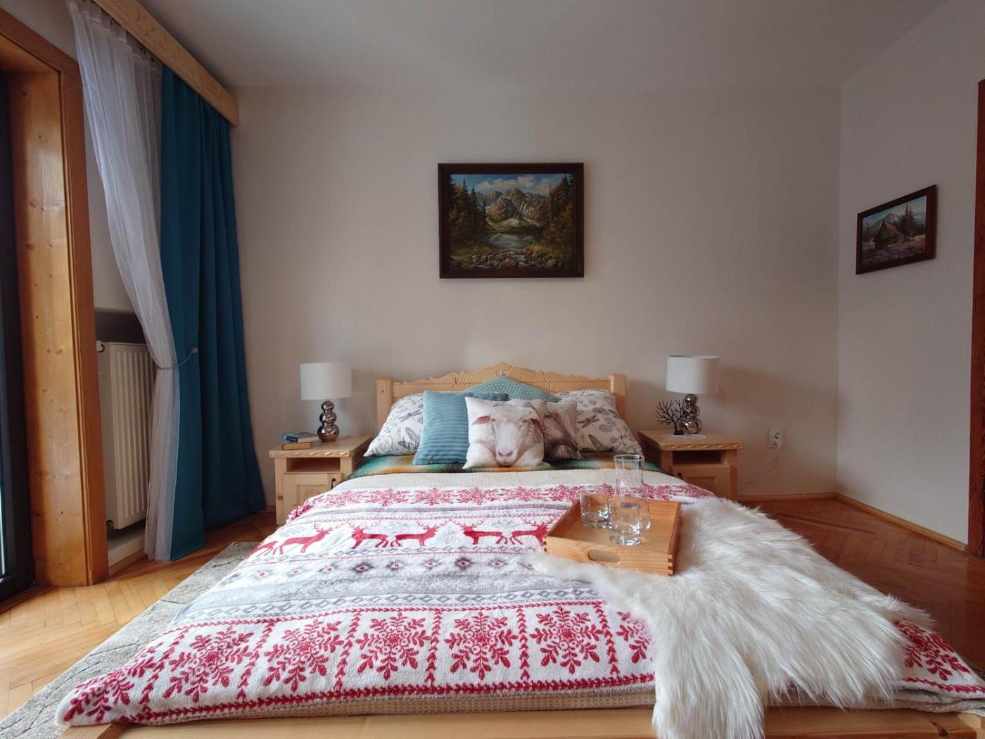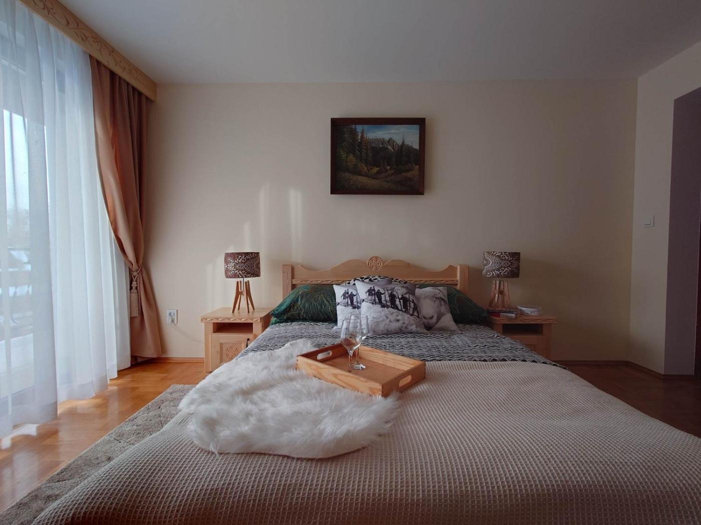 Apartament z widokiem na góry. This apartment consists of 1 living room, 1 separate bedroom and 1 bathroom with a shower and bathrobes. Guests will find a stovetop, a refrigerator, kitchenware and a microwave in the fully equipped kitchenette. The apartment also offers a barbecue. Featuring a balcony with garden views, this apartment also provides a tea and coffee maker and a flat-screen TV. The unit offers 3 beds. Apartament - 5 osobowy. Powierzchnia pokoju ok.: 50 mkw.