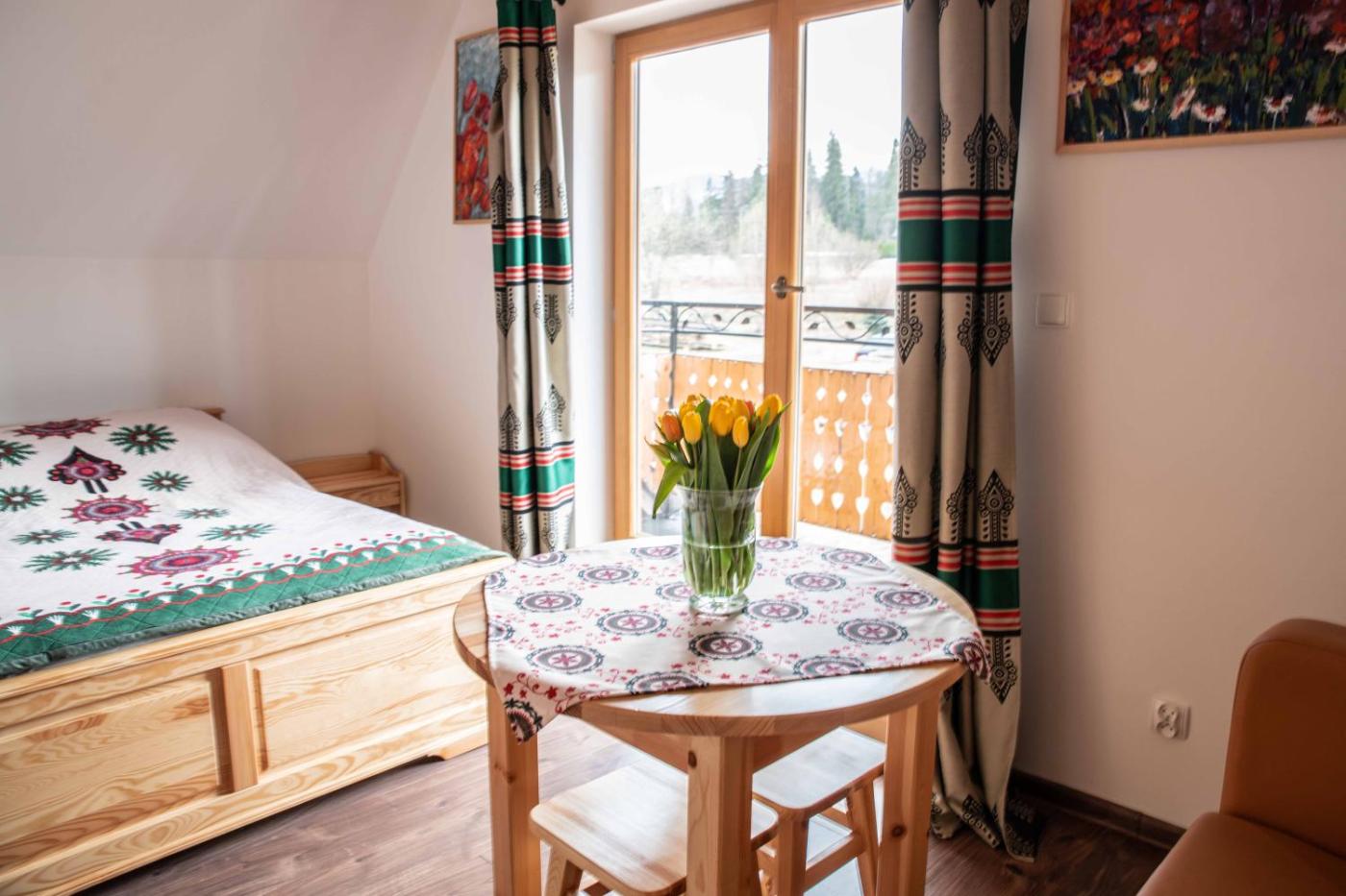 Apartament z 2 sypialniami. This apartments standout feature is the hot tub. Featuring a private entrance, this apartment also is comprised of 2 bedrooms, a seating area and 2 bathrooms with a shower and a hairdryer. Guests will find a stovetop, a refrigerator, kitchenware and a microwave in the fully equipped kitchenette. The apartment also has a barbecue. Boasting a terrace with mountain views, this apartment also offers soundproof walls and a flat-screen TV. The unit offers 3 beds. Apartament - 5 osobowy. Powierzchnia pokoju ok.: 40 mkw.